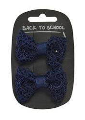Navy Lacy Hair Bow 2Pack